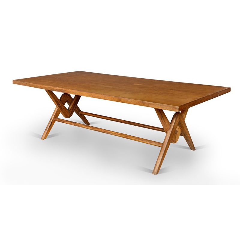 Table rectangulaire de conférence dite "Committee table"en teck massif et placage de teck. Pieds à motif de V entrecroisés, reliés en partie basse par deux entretoises. Plateau en épais placage, renforcé par une armature quadrillée, venant s'encastrer sur le bloc piètement.